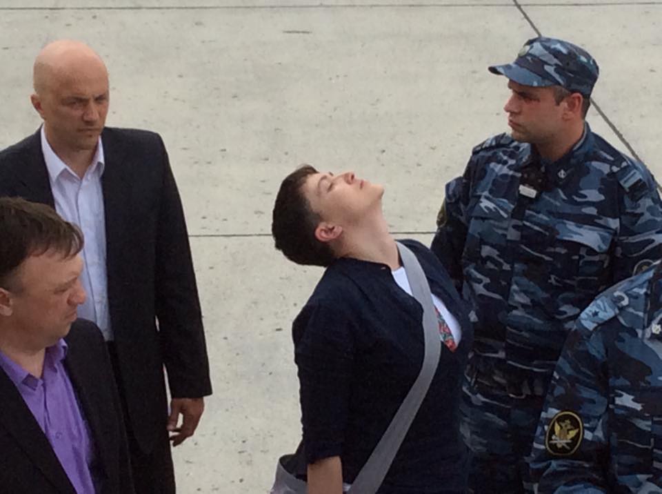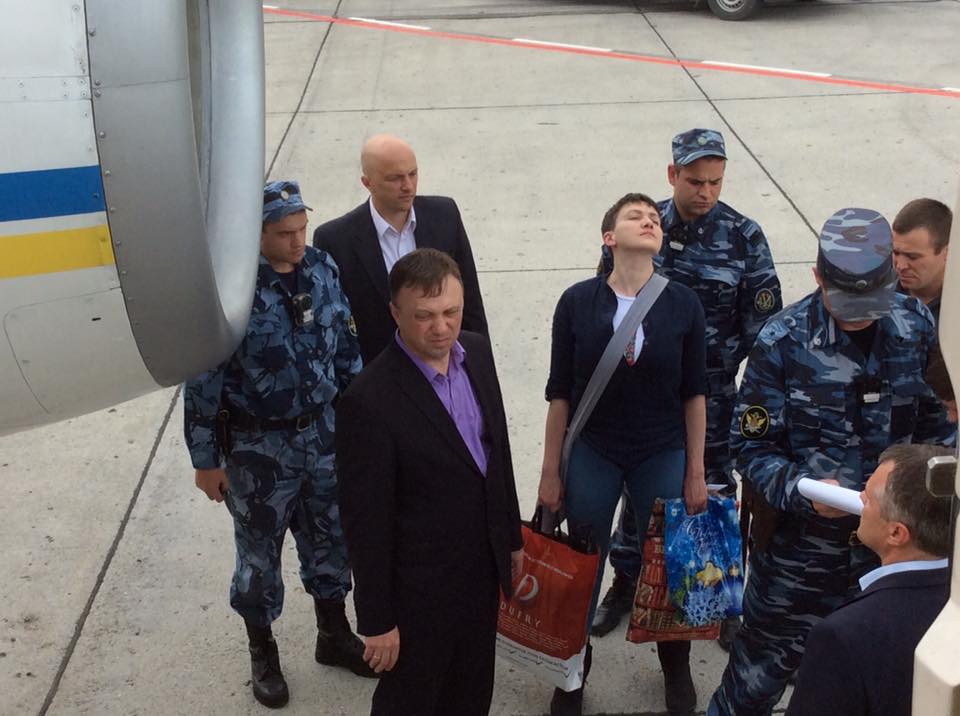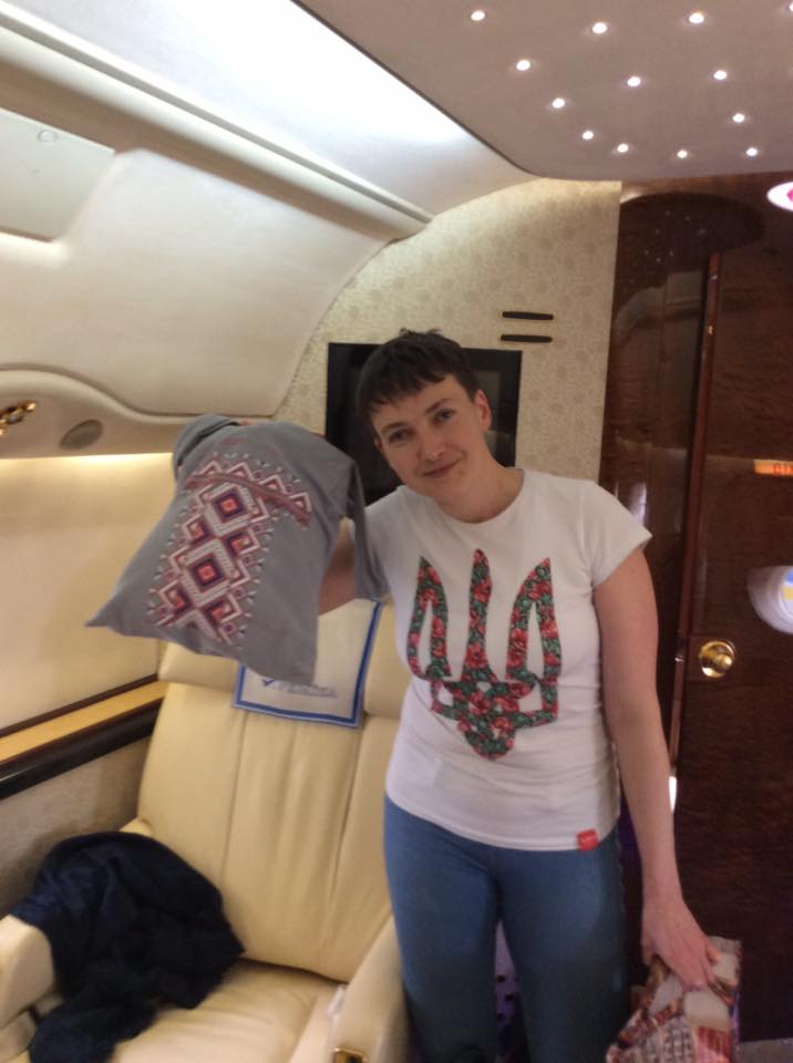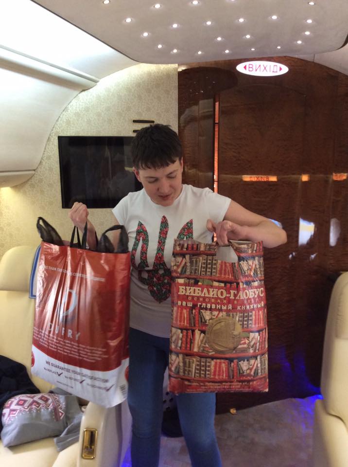 «6.30- самолет. Президентский борт вылетает за Надеждой. Ростов. Мы не имеем права сходить с трапа. Операцией по поручению президента руководит глава СБУ. Согласно договоренностям, Надежда должна зайти в самолет в ту минуту, когда российский самолет, в это время приземлился в Киеве, и возьмет на свой борт двух российских убийц- ГРУшников…… Час ожидания. Начинается движение двух машин без номеров. Там — спецназ, ФСБ и где-то за темными окнами Надежда … Ждем ее выхода. Вдруг у нас с Святом начинают обрываться телефоны: в российских СМИ запущена информация о самолете, освобождении и тд … Все задерживается. Мы нервничаем. Смотрим с открытых дверей самолета в глаза тем, кто в машине. Все! Пошло движение! Она выходит в окружении десяти мужчин в форме. Она смотрит на небо и жадно хватает воздух. Она поднимается на борт и кричит: «Слава Украине! Героям слава!!»», — написала она.
