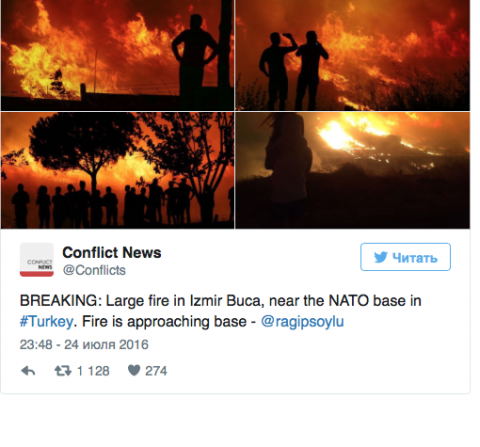 На западе Турции в городе Измире бушует мощнейший пожар на военной базе НАТО. Причины пока неизвестны, сообщается и о взрывах.сообщает http://newsonline24.com.ua