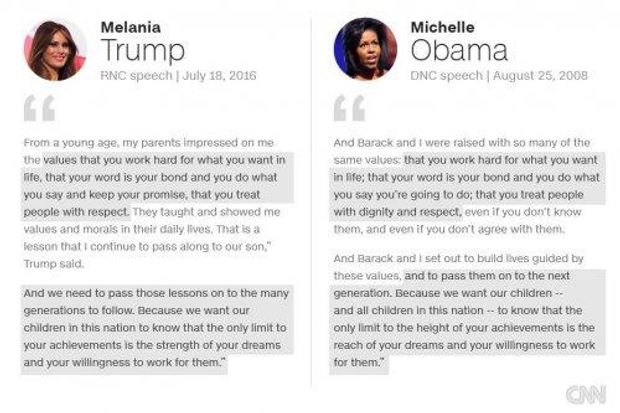 Журналисты заметили, что речь Мелани Трамп очень похожа на речь нынешней первой леди США Мишель Обамы, которую она произносила в 2008 году.