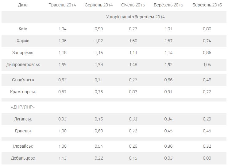 За словами аналітиків, схожа картина в містах, не зачеплених війною безпосередньо - Запоріжжі, Дніпропетровську та Харкові. Там, як і в столиці, спостерігаються коливання освітленості і в більшу, і в меншу сторони. Але взагалі рівень економічної активності в цих містах залишається відносно стабільним.