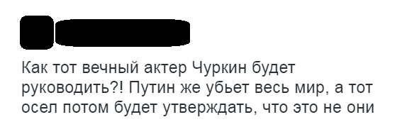 “Как тот вечный актер Чуркин будет руководить?! Путин же убьет весь мир, а тот осел потом будет утверждать, что это не они” – возмутились в Сети.