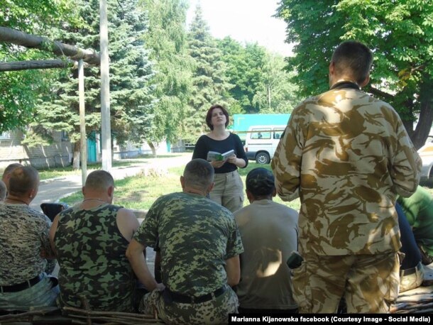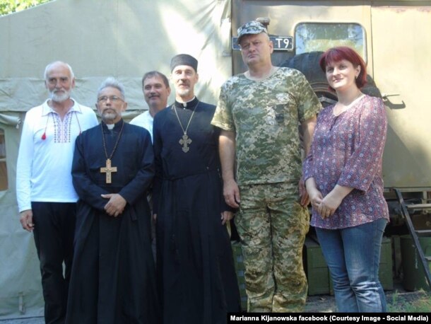 Маріанна Кіяновська в зоні АТО з волонтерами-священиками