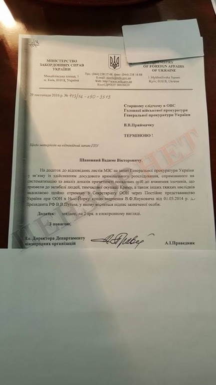 Матиос подчеркнул, что заверенная копия письма будет приложена к общему делу, направленному против Януковича, сообщает “УСН-1492news”.